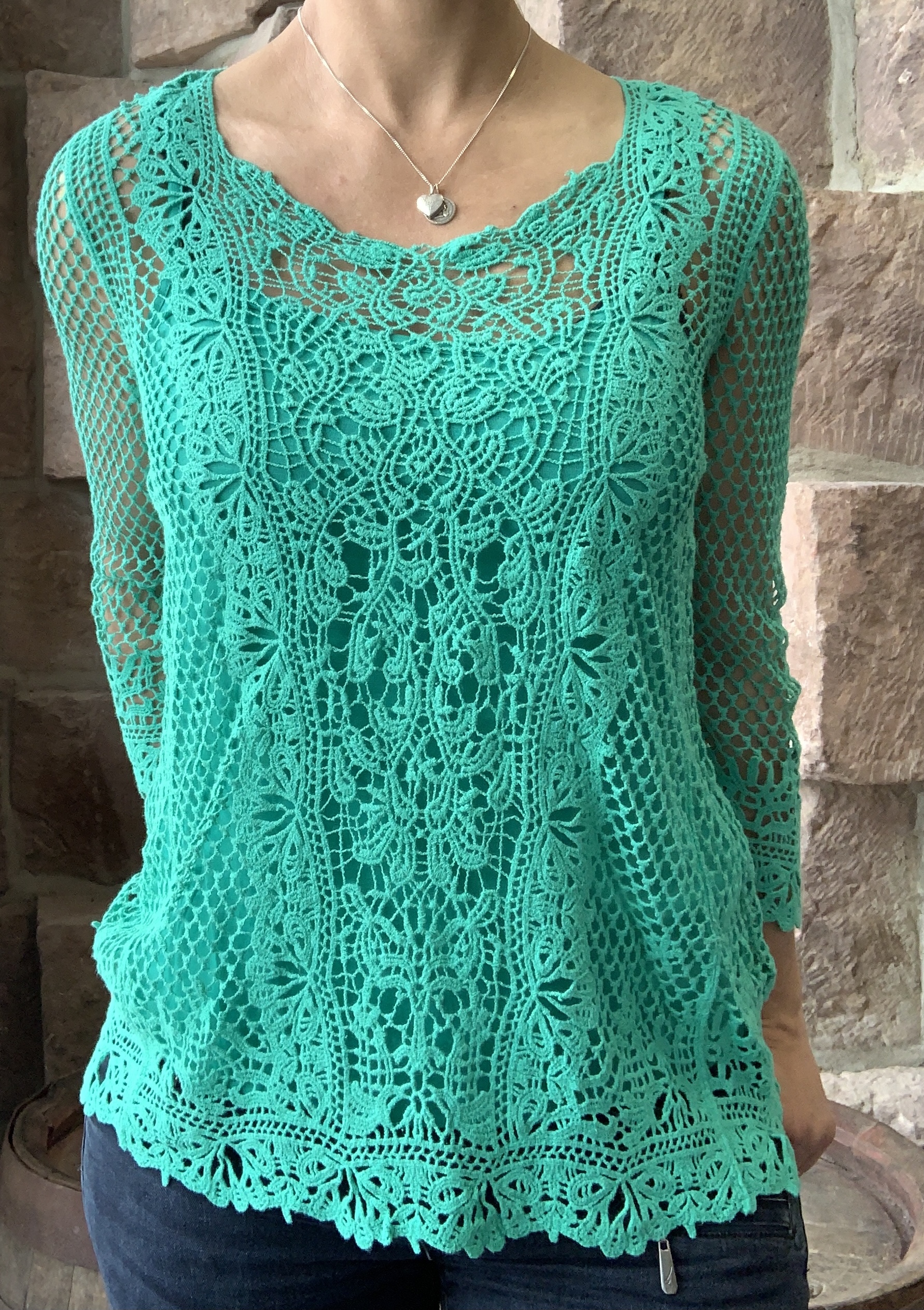 Herrliches Spitzenshirt mit zahlreichen Details und 3/4 Armlänge.